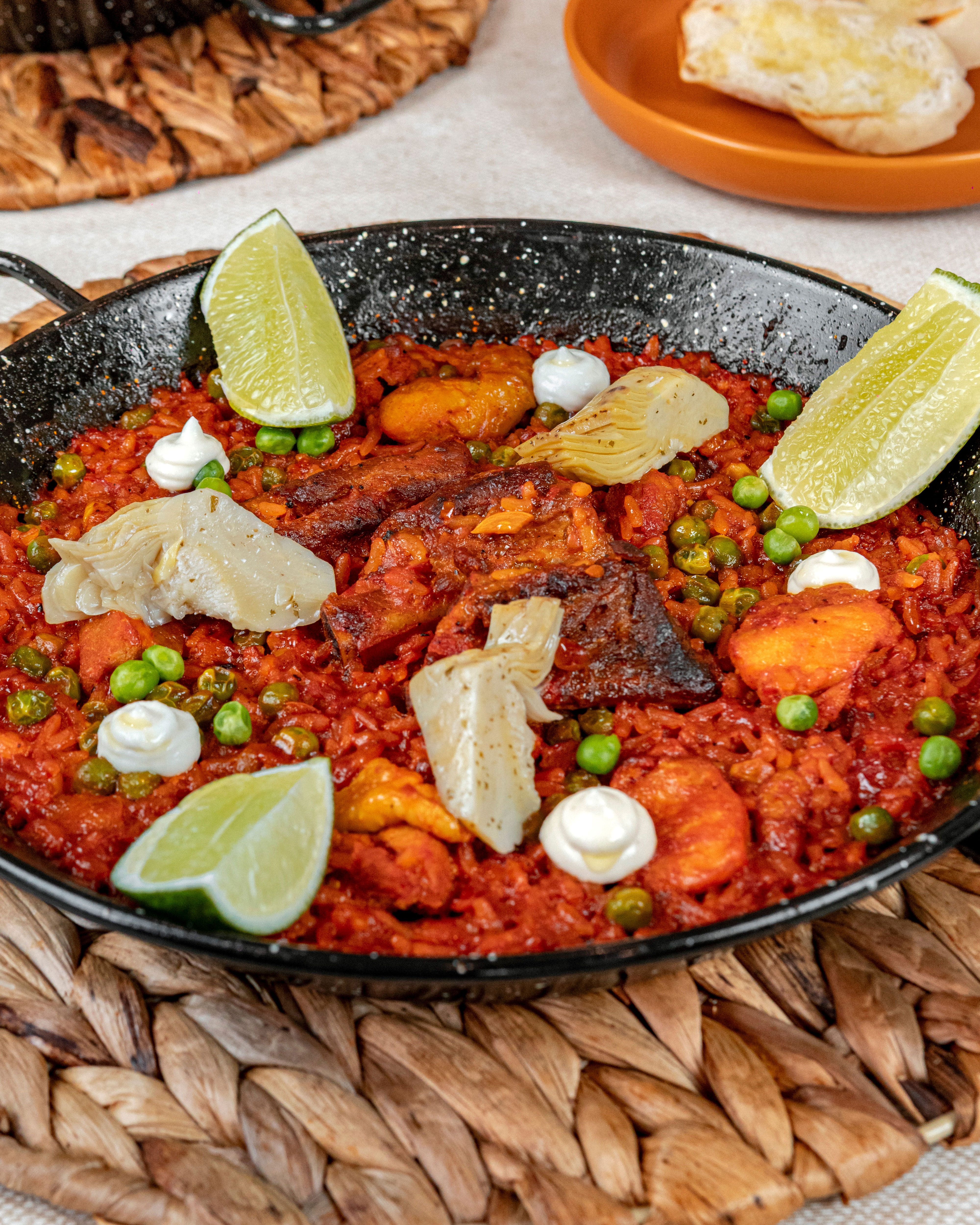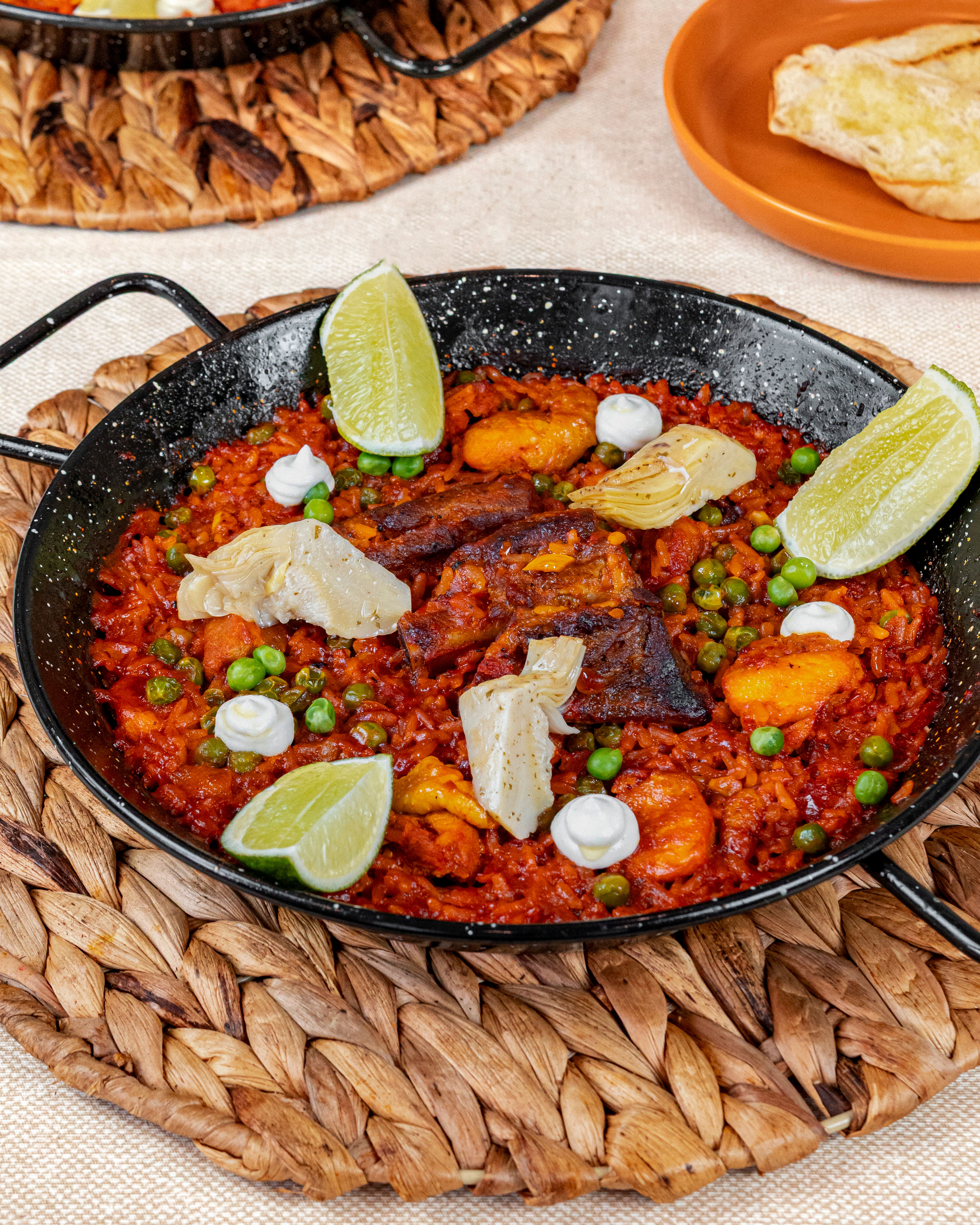Arroz al estilo tradicional con trozos de pollo y cerdo, cocido lentamente en fondo de la casa para resaltar todo su sabor.
